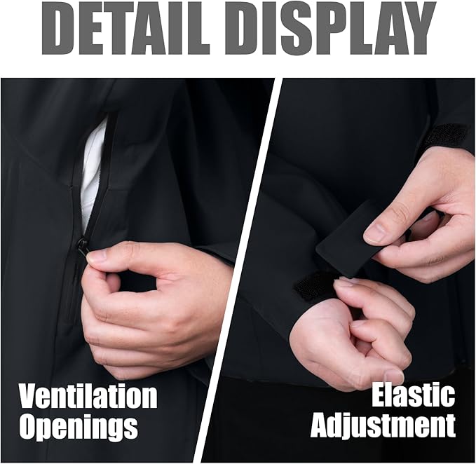 - Customizable details for outdoor activities: adjustable cuffs with , an adjustable hood and an elastic hem offer maximum freedom of movement and optimal protection. Perfect for sports and cool weather adventures.