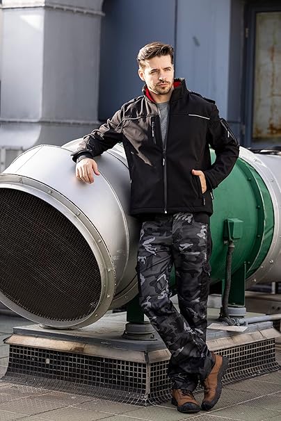 WORK IDEA Softshell Jacket Men's Waterproof Breathable with Removable Hoodie, Cycling Jacket, Rain Jacket, Work Jacket, Outdoor Hiking